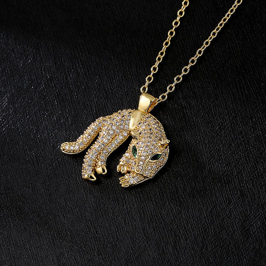Hip Hop Tiger Leopard Lion Pendant Copper 18K Gold Zircon Animal Necklace