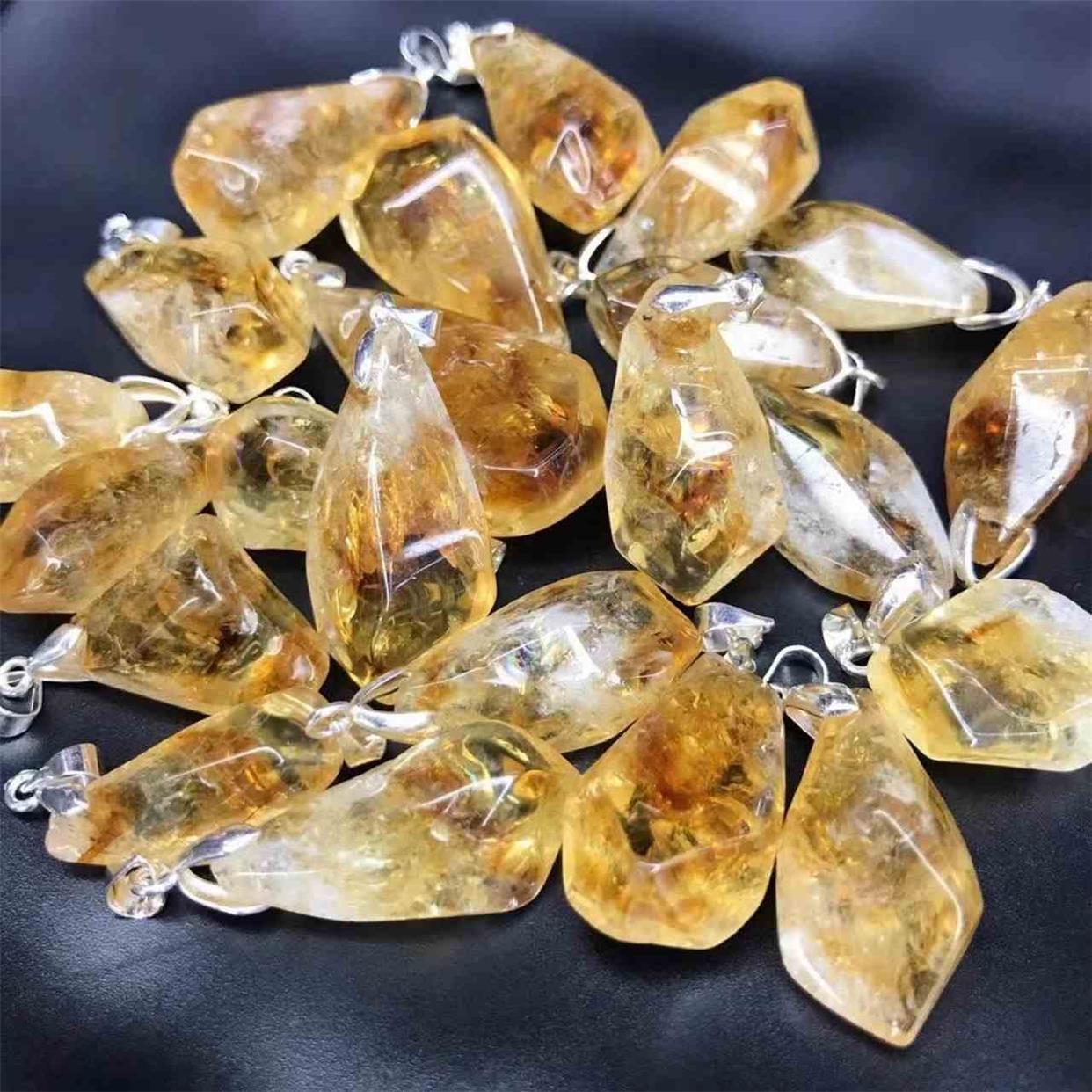 Raw Stone Yellow Pagoda Crystal Leather Rope Necklace
